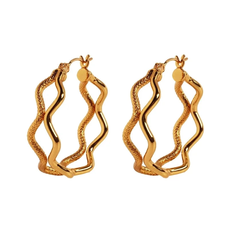 Deze unieke hoops hebben een zigzagpatroon. Ideaal combineerbaar met kleinere oorbel.