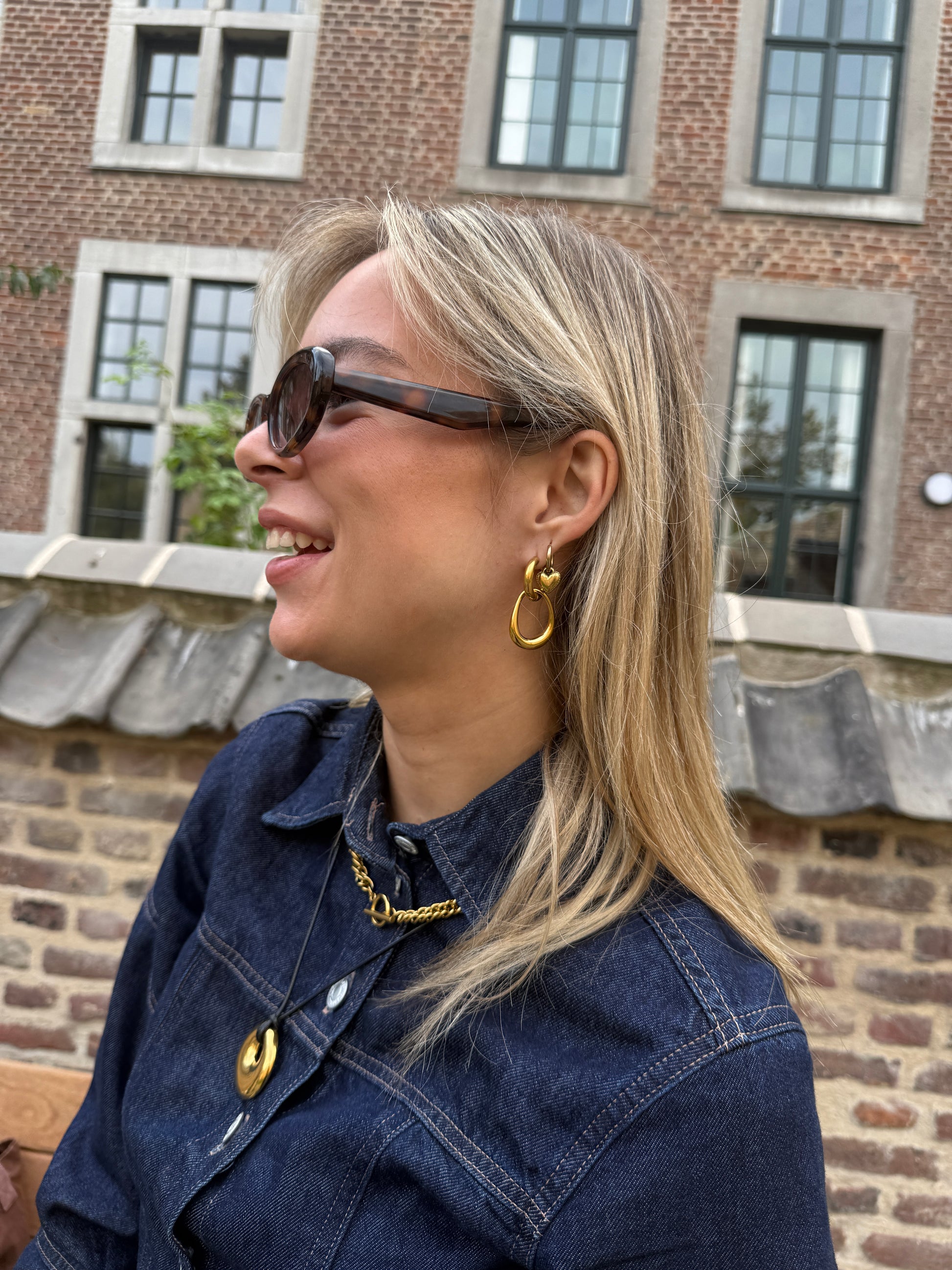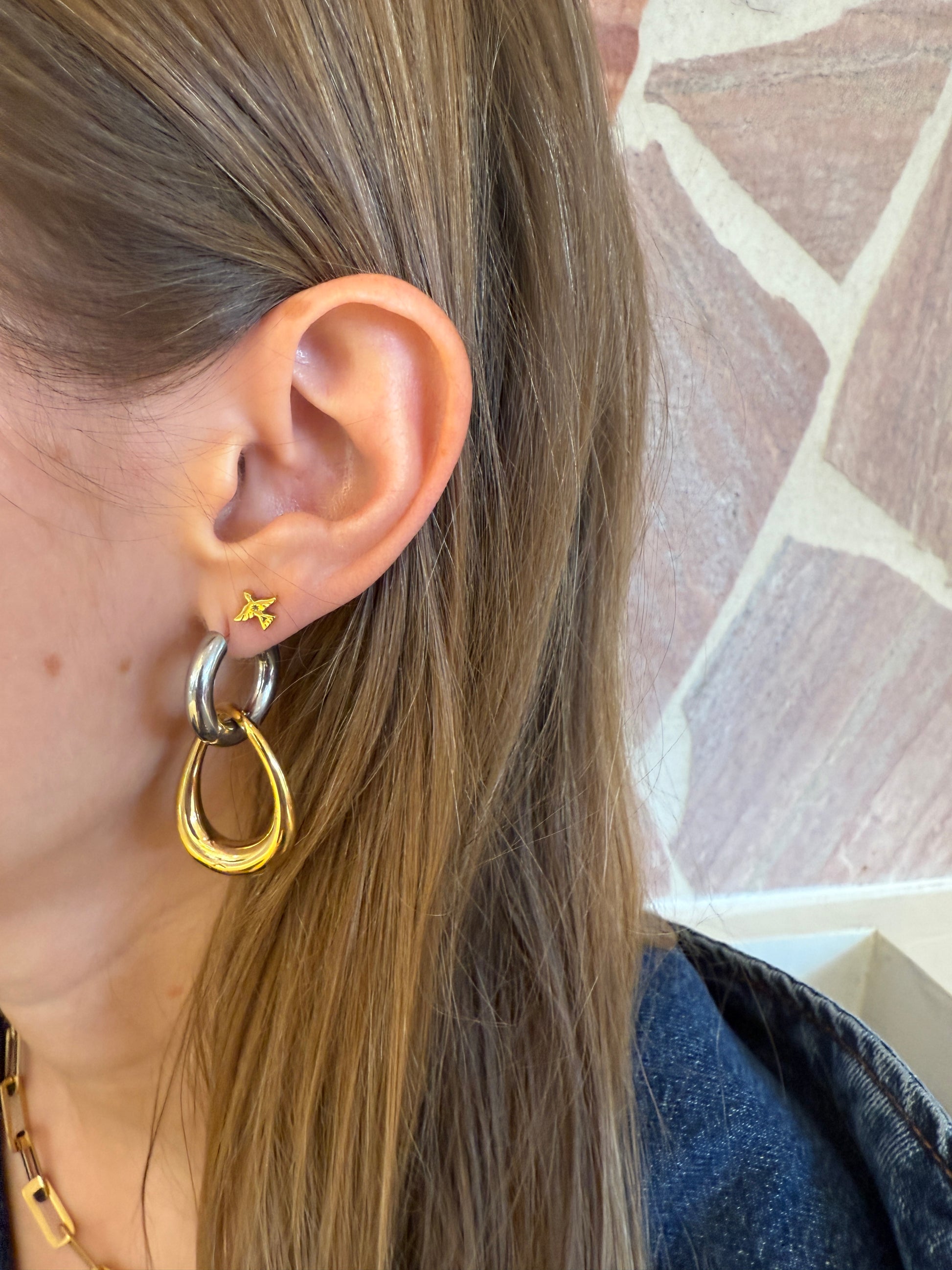 Deze oorbellen zijn ovaalvormig en maken je outfit net iets speelser. Deze oorbellen zijn verkrijgbaar in het goud en in een mix van goud en zilver. Je kan het onderste deel ook afhalen waardoor je een kleine hoop krijgt. Verschillende manieren om deze unieke oorbellen te stylen.