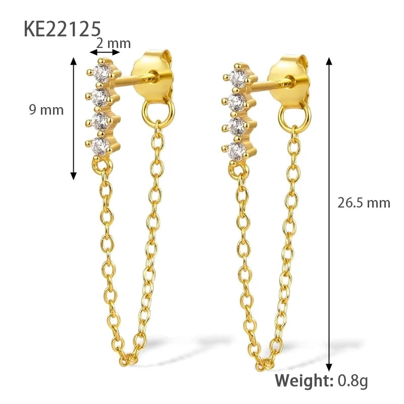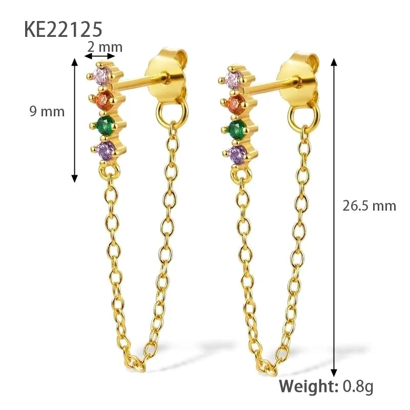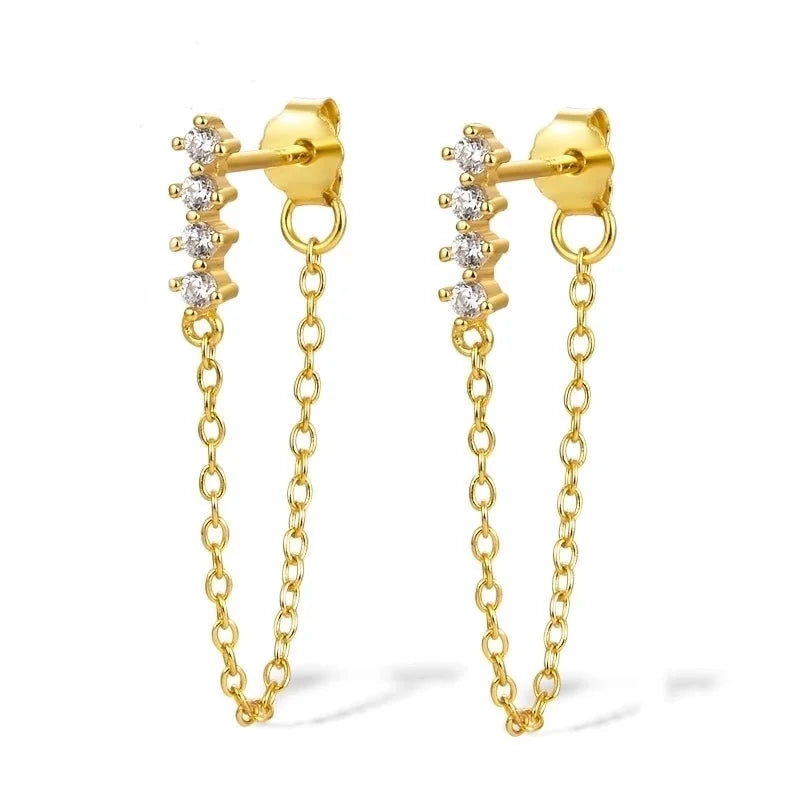 Een unieke oorbel die begint met steentje aan de bovenkant gevolgd door een fijne ketting die achter je oor valt. Verkrijgbaar in twee varianten: met witte en gekleurde steentjes.