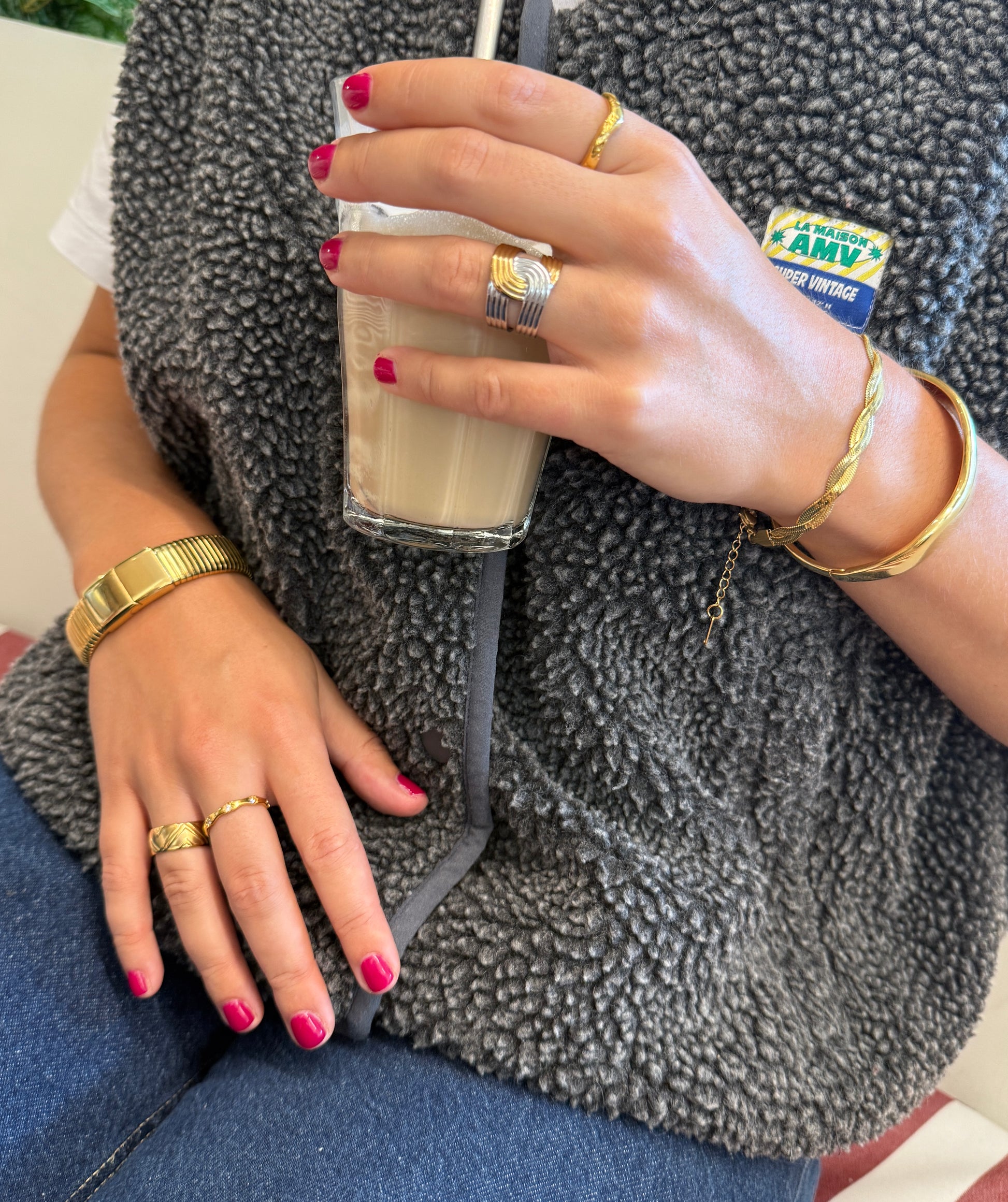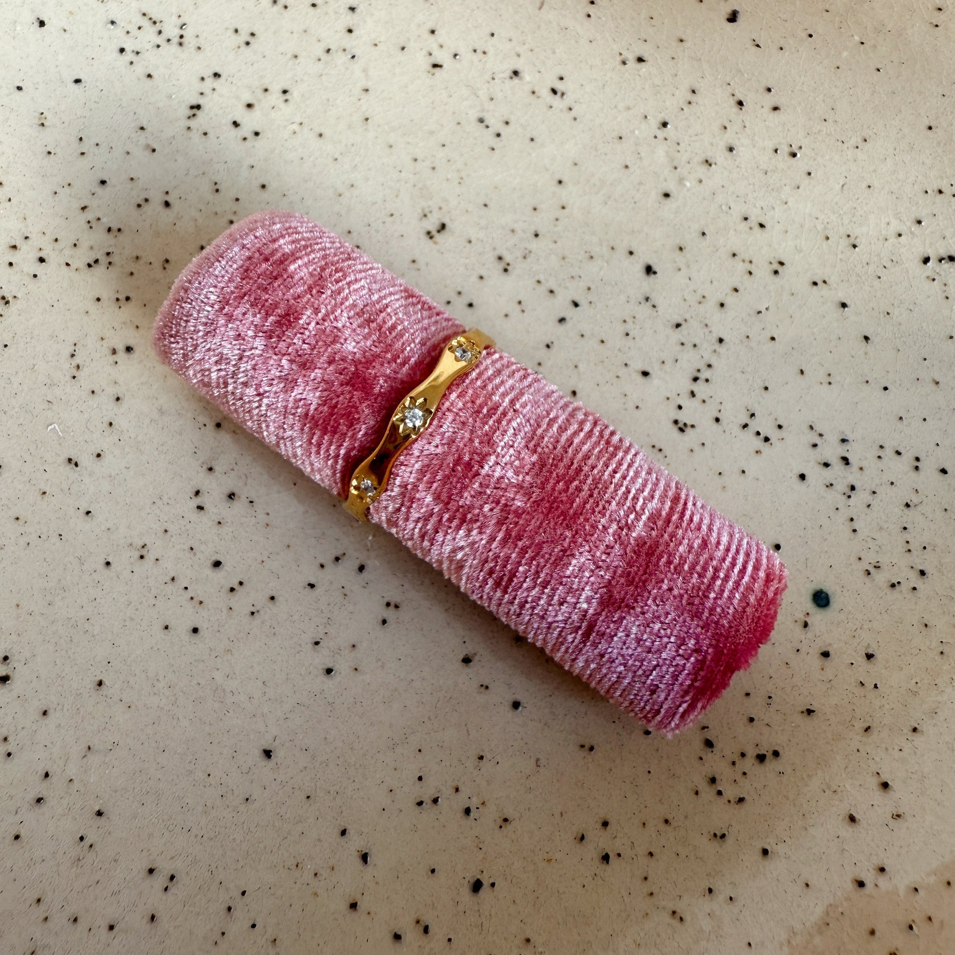 Deze dunne ring met kleine zirkoon steentjes is subtiel en fijn aan de vinger.